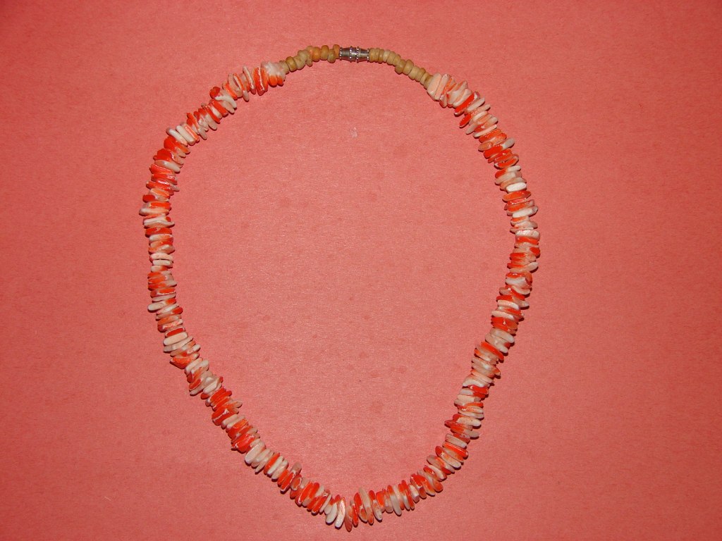 Orange ocean shell necklace 18.5 inches long with a barrel nut clasp. $8.00 |