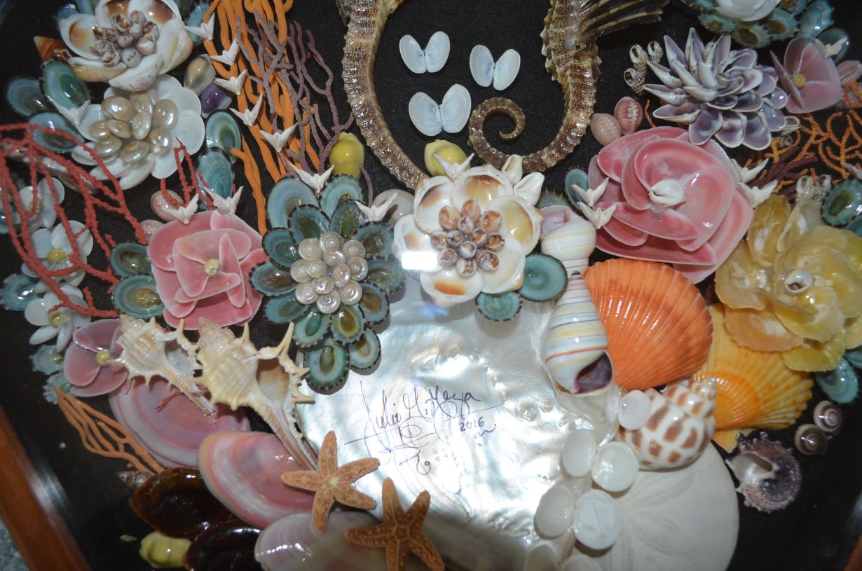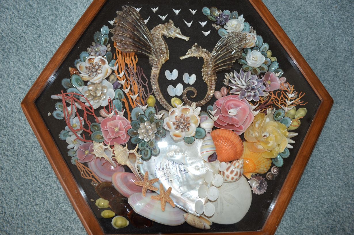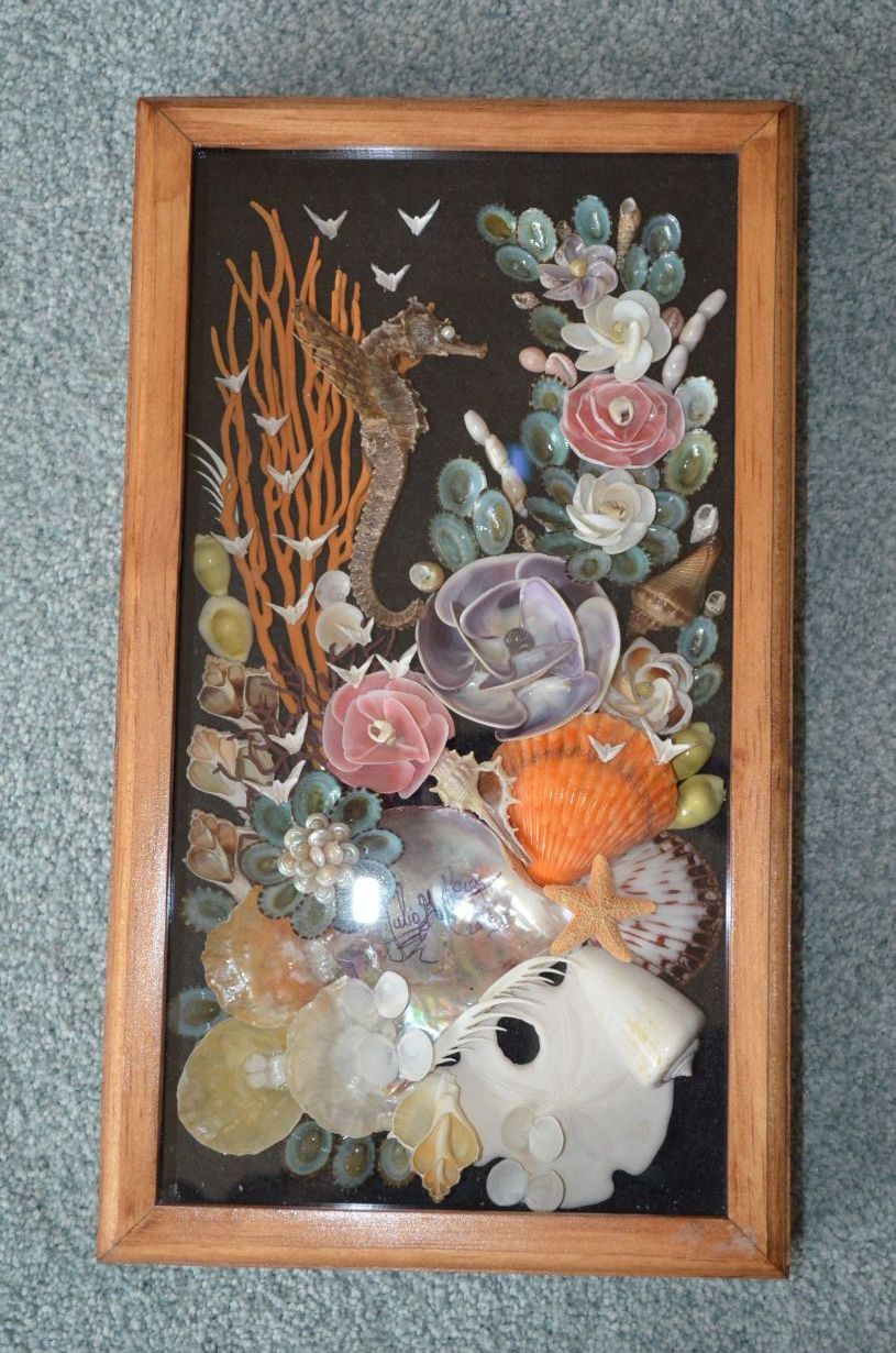 Shell Bouquet/Sea Horse in shadow box by Julio Meza