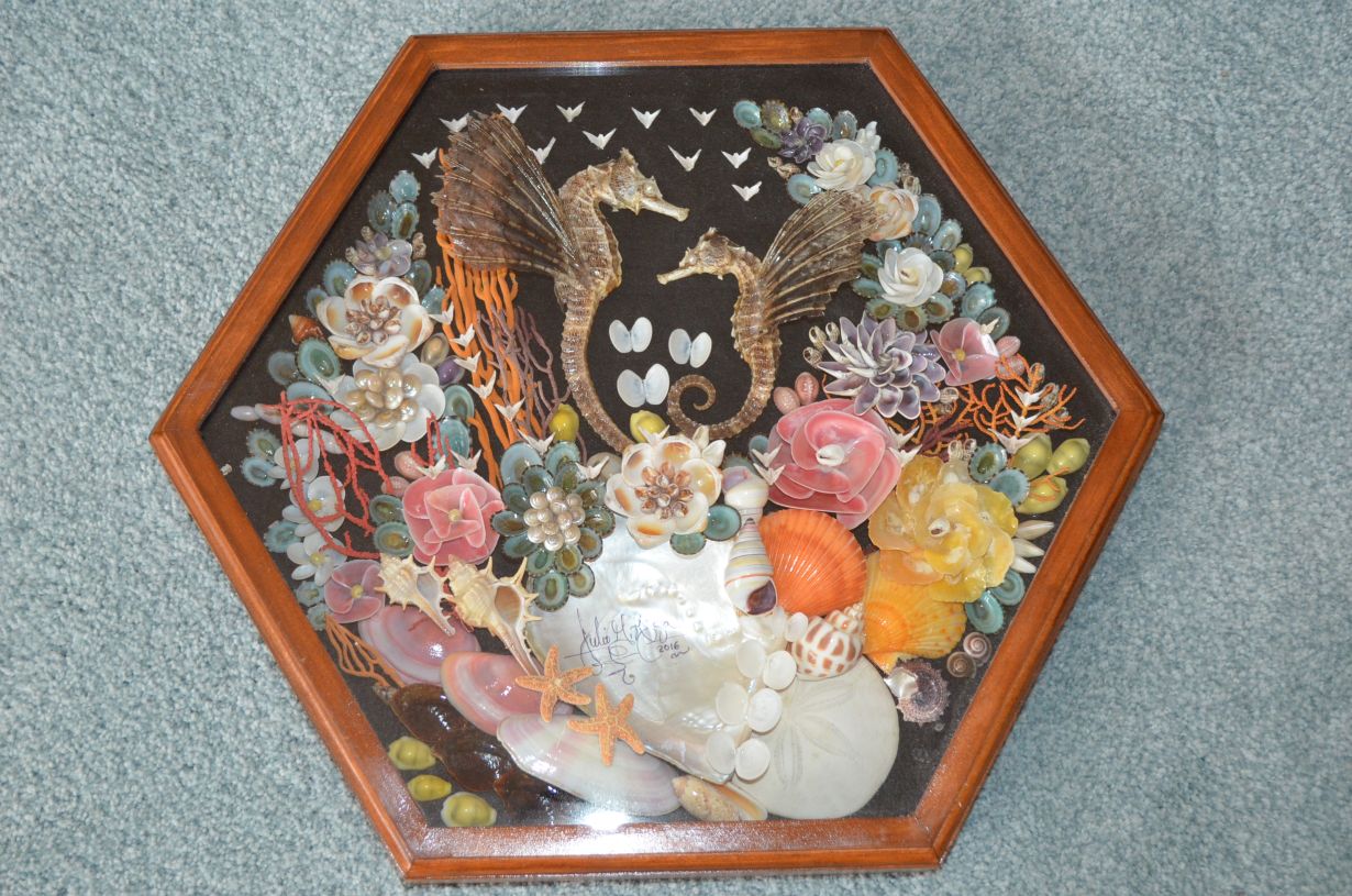 Shell Bouquet/Sea Horses in shadow box by Julio Meza